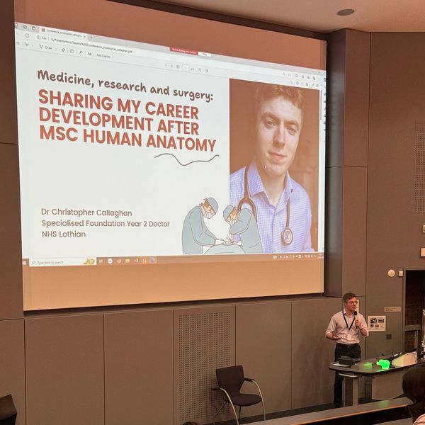 Undertaking anatomy training is an incredibly rewarding experience, and can open many potential career paths. I feel like it is important for young anatomists to understand the breadth of opportunities that are available to them for further career development and to pursue their interests. I therefore would like to provide an overview of my career journey and my reflections on this experience so far. I completed the MSc Human Anatomy at The University of Edinburgh from 2018 to 2019 having previously undertaken a BSc (Hons) Medical Sciences at The University of Edinburgh. During my MSc, I became very passionate about the structure and function of the human body and it’s clinical implications. After completing my MSc dissertation research on iatrogenic injury during total ankle arthroplasty, I became very interested in surgery. I then studied medicine at The University of Edinburgh and am now a current year 1 doctor working in NHS Lothian on the Specialised/Academic foundation programme. During medical school, I further developed my passion for head and neck anatomy as well as clinical research, which has now led to me undertaking a 4 month research project at the Institute of Cancer Research (London) on the use of liquid biopsies in detecting early disease recurrence in head and neck cancer. I plan on applying for core surgical training this October. I would like to provide your attendees with a overview of this story as I think it shows the true breadth of application of anatomical training in your career. Thank you.
